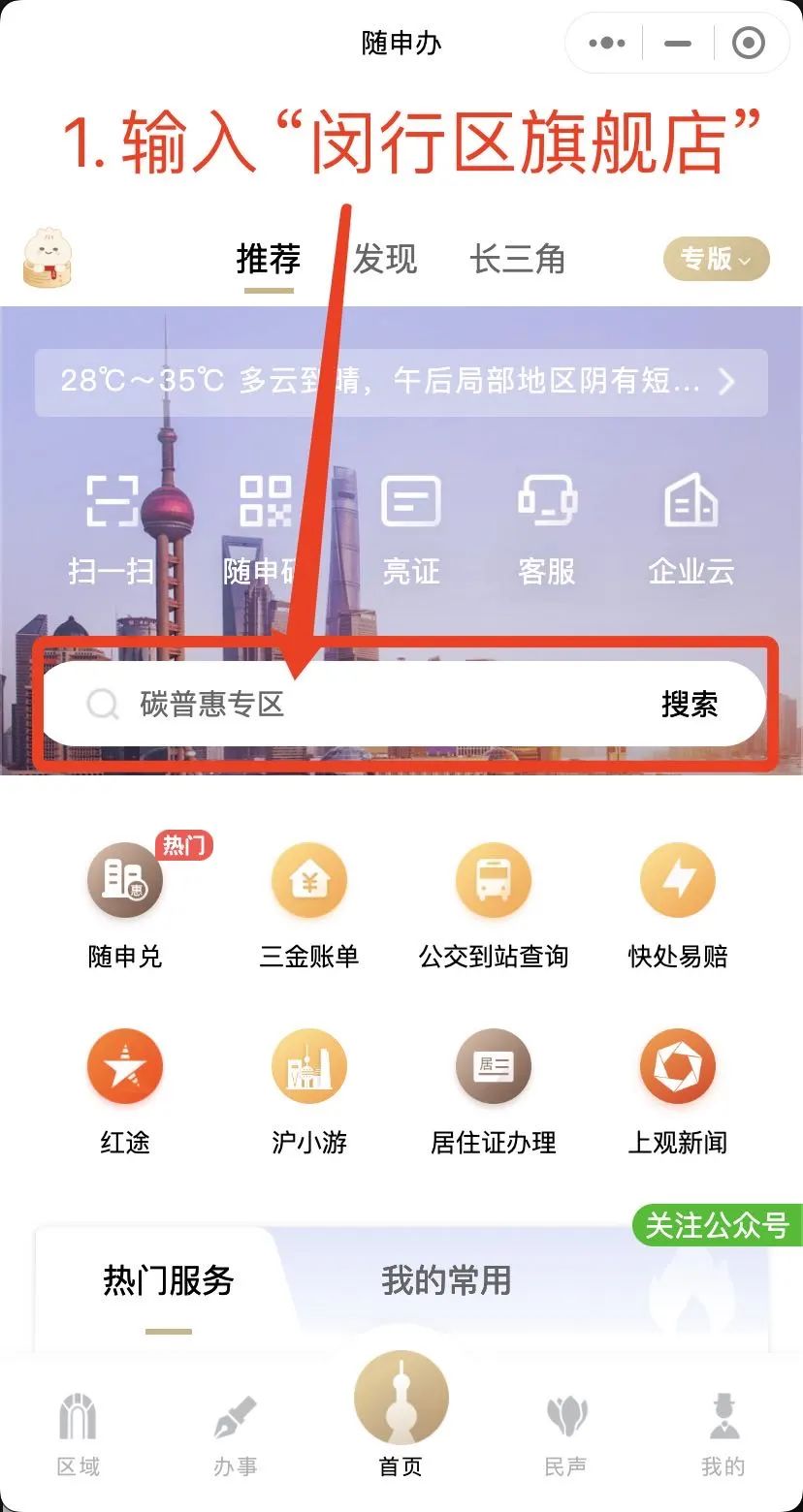 1.打开“随申办”,搜索“闵行旗舰店”;