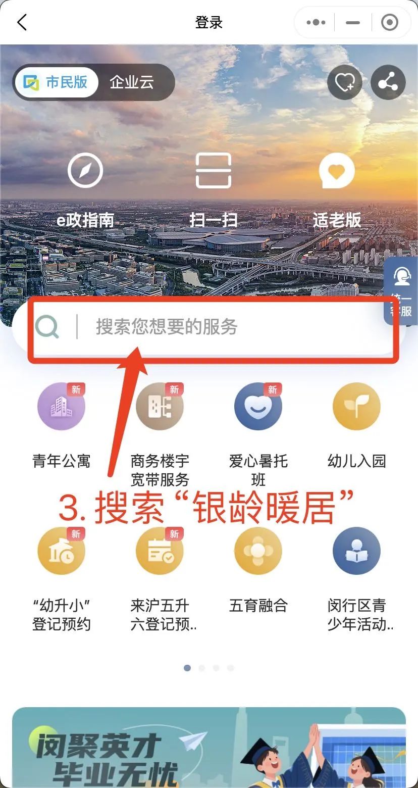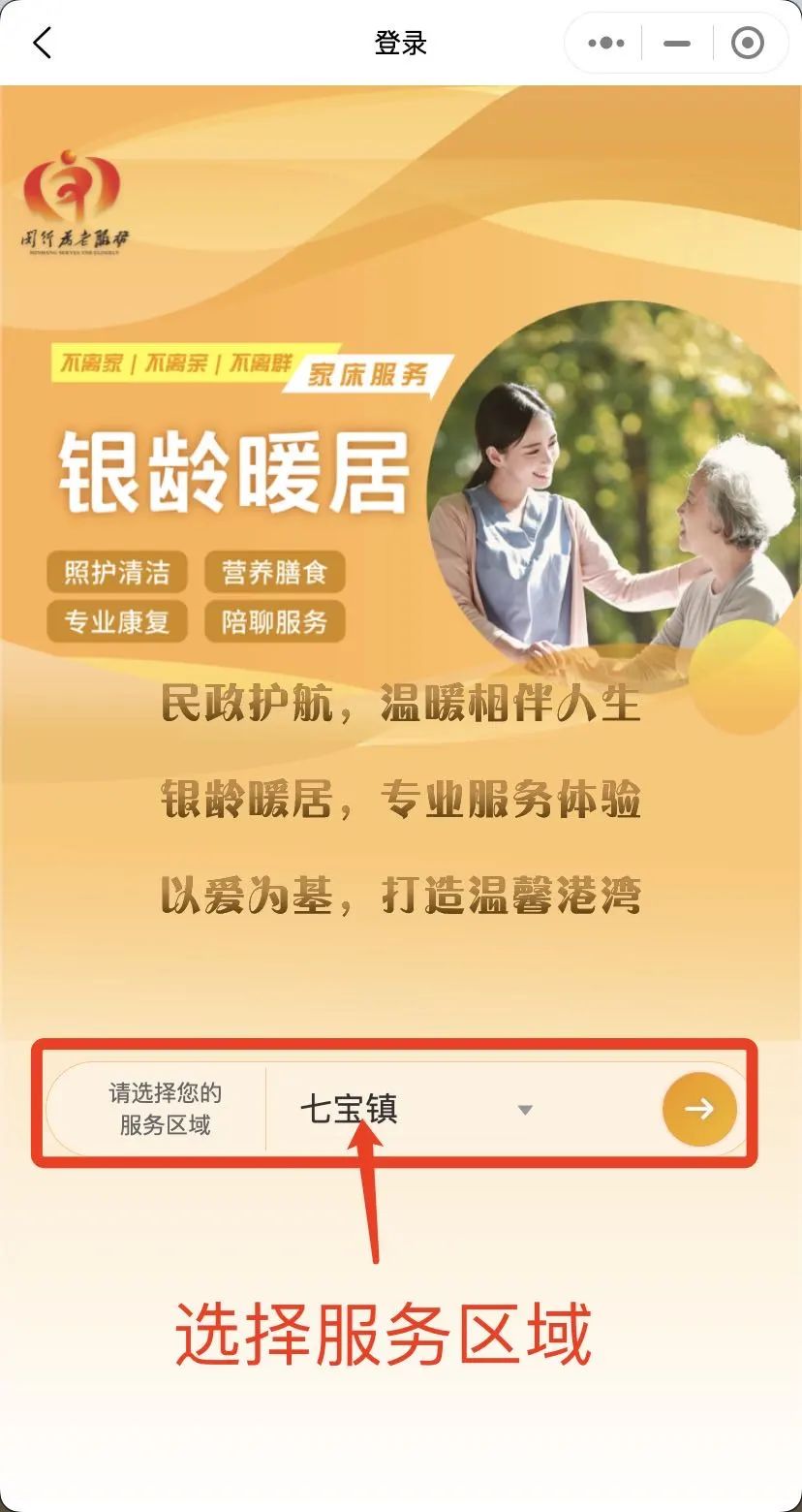 2.搜索“银龄暖居”,选择您所在的街镇;