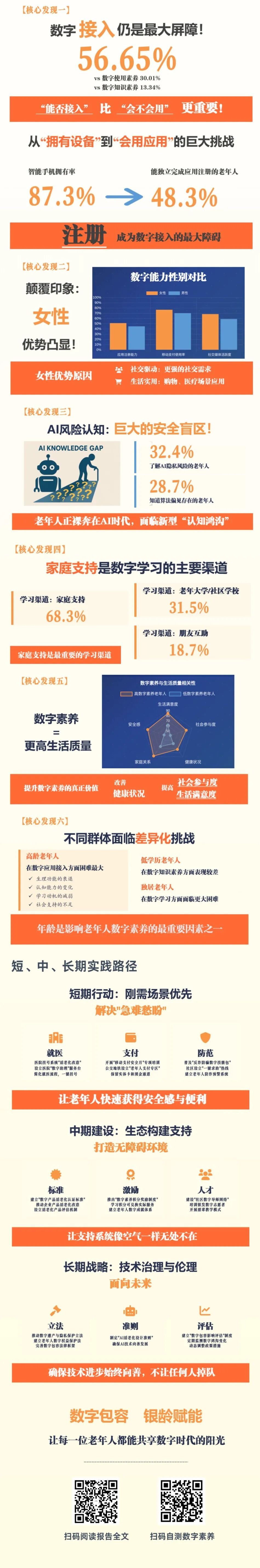 为系统掌握本市老年人数字素养现状与发展趋势,上海市老龄办联合市委老干部局、市教委近期完成了《老年人数字素养报告(2025)》编制工作。本次调查基于全市16个区5000份有效问卷,运用熵值法构建科学评估体系,并与2020年基线数据对比,全面呈现五年来本市老年人数字素养的发展轨迹。