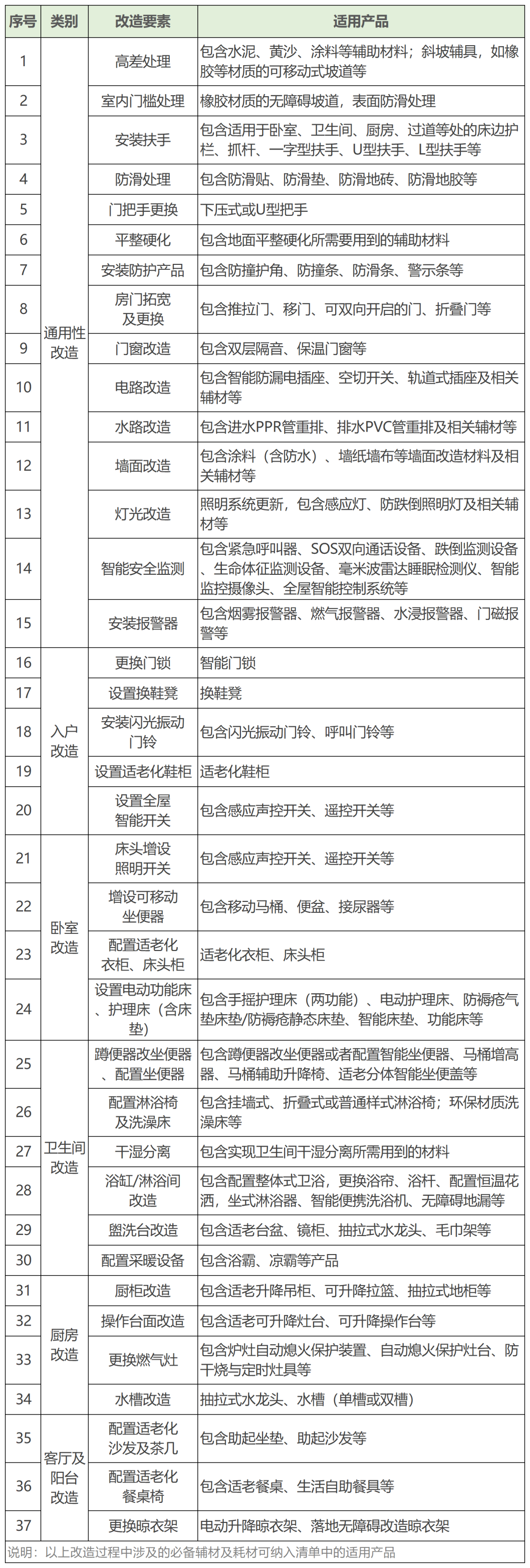 居家适老化改造服务和产品建议清单