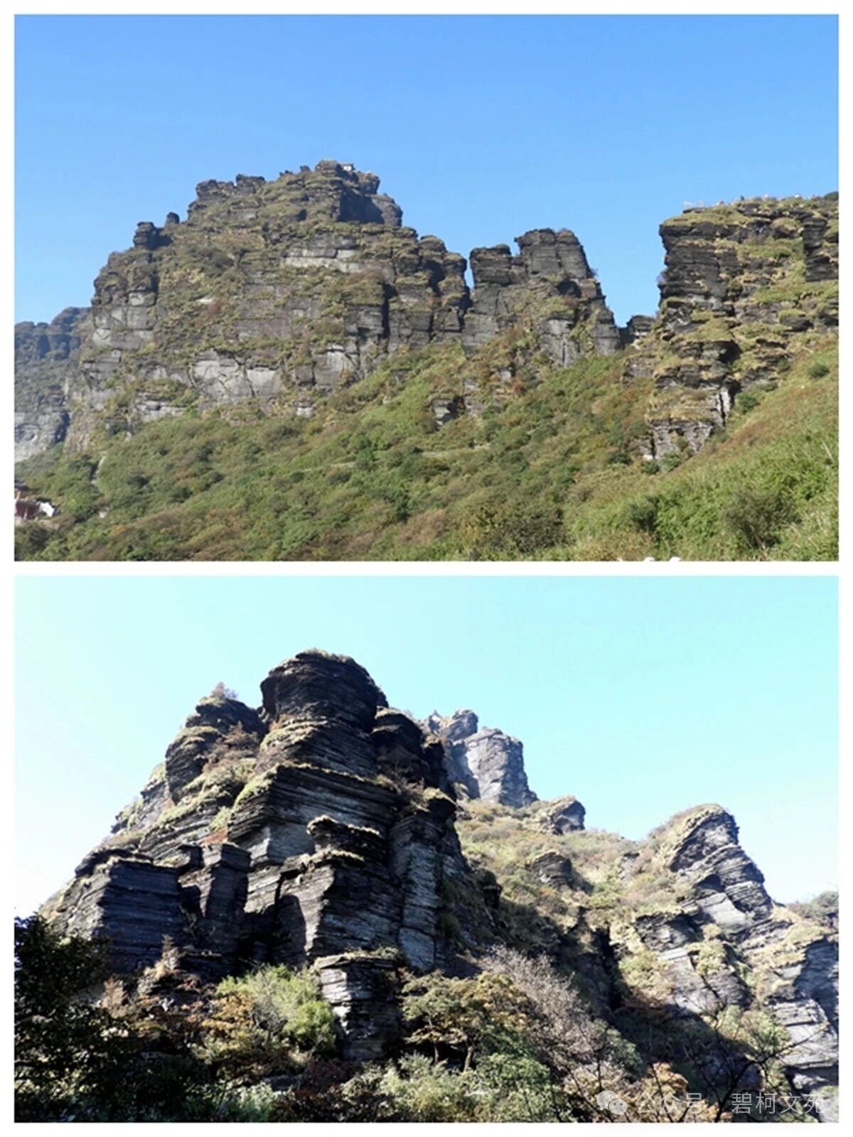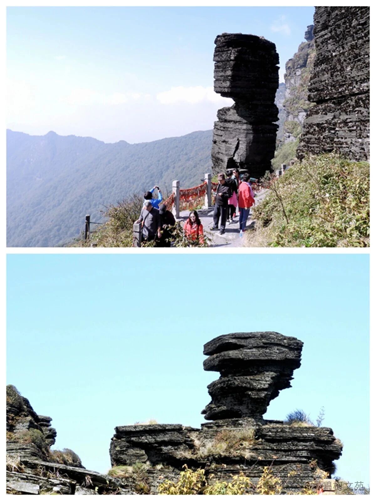 查阅资料始知。梵净山是中国南方最早从海洋抬升为陆地的地方之一,距今约14亿年。梵净山属亚热带湿润季风气候区,保存了亚热带原生生态系统,并孑遗着7000万至200万年前的古老珍稀物种,繁衍着野生动植物7100多种,是黔金丝猴唯一的栖息地。