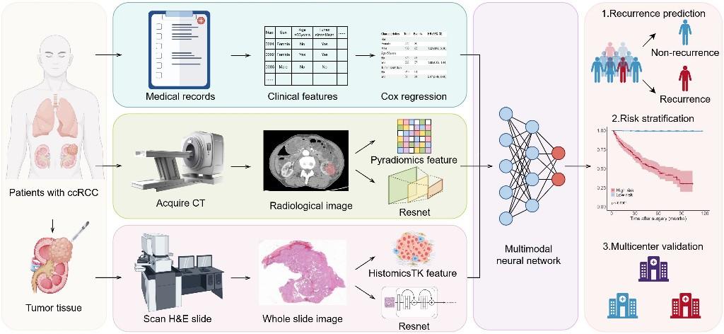 肾细胞癌是泌尿系统高发恶性肿瘤,其中透明细胞肾细胞癌占比达70%。当前,手术切除是主要治疗手段,但约20%—30%的患者术后会出现复发转移。目前,临床常用的复发风险评估工具存在明显局限,而分子检测类模型则面临成本高、难普及等问题。此外,上述工具易出现“风险误判”,或低估高风险患者导致治疗不足,或高估低风险患者造成过度治疗,给患者带来身心与经济双重负担。