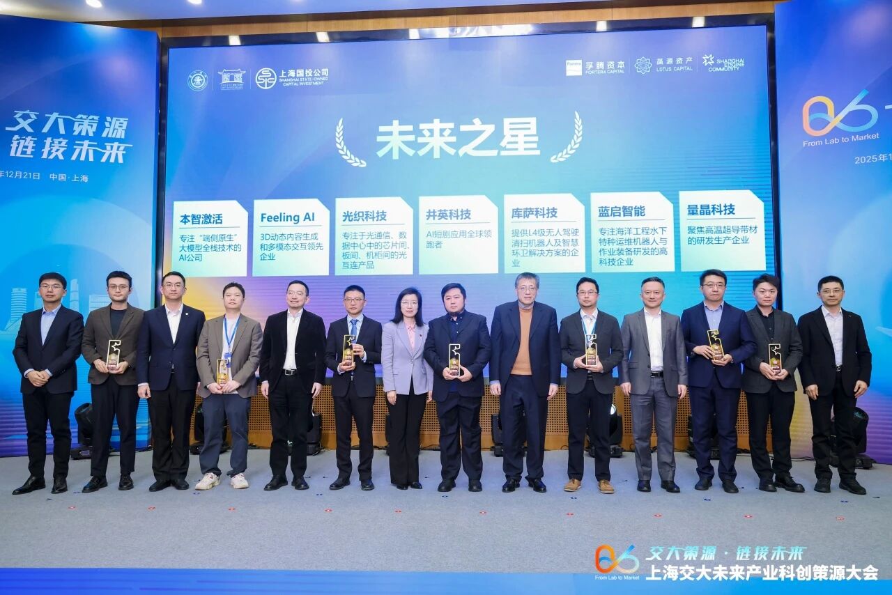 在本次大会上,还举行了交大2025“未来领军企业”、“未来之星企业”的颁奖典礼,伯镭科技、亘芯悦、商汤医疗、图灵量子、纬景储能、翌曦科技、源络科技等优秀企业获颁交大2025“未来领军企业”;本智激活、Feeling AI、光织科技、井英科技、库萨科技、蓝启智能、量晶科技、瓴就医疗、灵睿智芯、氢鸾科技、瞬景科技、添音生物、宇生月伴、智像医疗等优秀企业获颁交大2025“未来之星企业”。