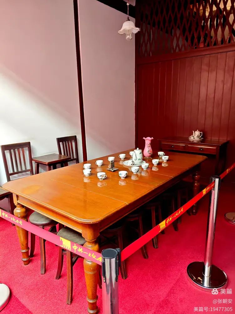 就在这栋二层石库门的客堂,围坐在长方桌前的13位代表和2位共产国际代表,一共15人召开了中国共产党第一次全国代表大会。大会确定名称叫中国共产党;通过了中国共产党的第一个纲领和决议,确定中国共产党是以马克思主义为指导,以共产主义为奋斗目标的无产阶级政党,并要以无产阶级革命军队推翻资产阶级政权等。大会还选举了三个人的中央领导机构,陈独秀是总书记,张国焘任组织主任,李达任宣传主任。