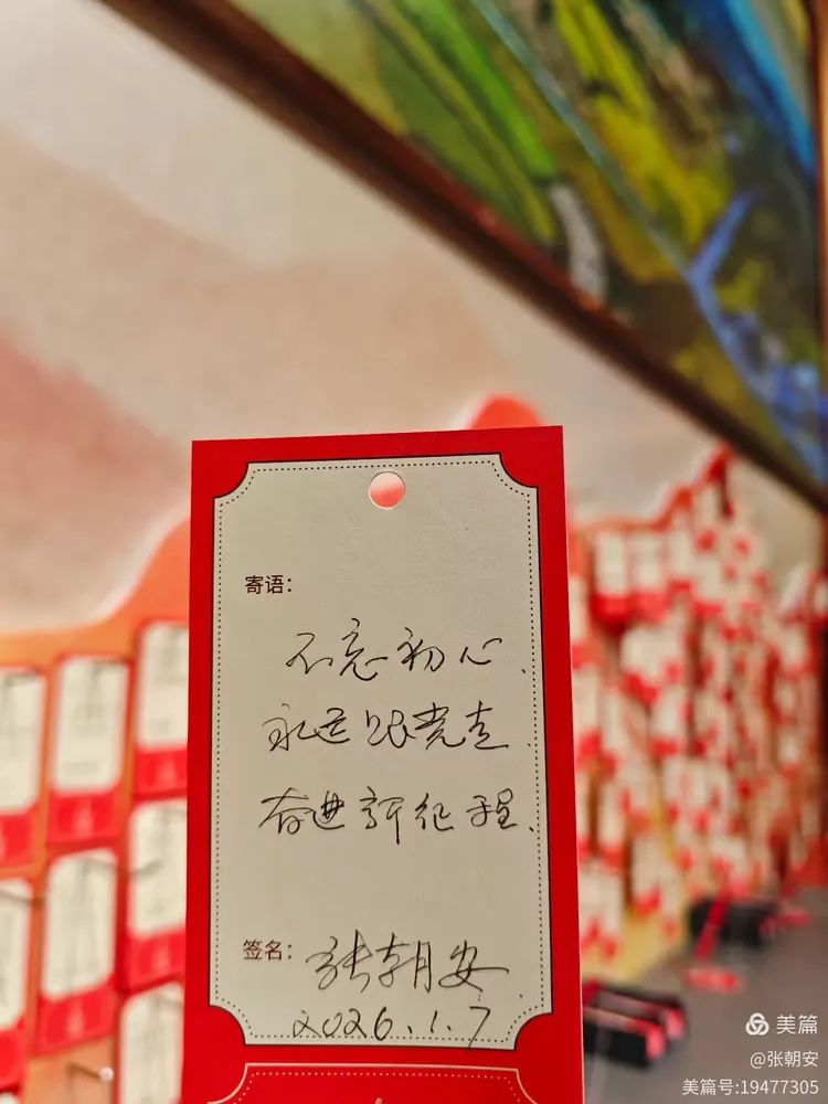 参观结束了,在门口有留言板,我也凑个热闹写两句,表达一下在党五十多年党员不忘初心、牢记使命的心声吧。