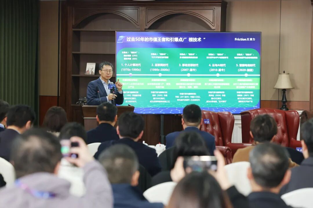 这场以“数智时代与零摩擦的世界”为主题的跨界交流活动,汇聚科技界、产业界、投资界等多位专业人士,共同探讨自超滑技术的发展机遇与产业变革路径。郑泉水教授是著名力学家、自超滑技术的开拓者以及创生教育科技工程的开创者,他在现场带来题为“数智时代与零摩擦的世界”的主旨演讲,以自主研发的自超滑技术为实践样板,并结合“创生教育”探索,为松江区、上海市及长三角的新质生产力发展提出“技术+人才”双轮驱动的创新方案。