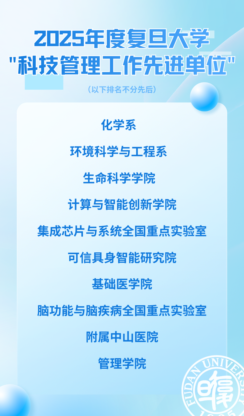 会上,2025年度复旦大学“科技管理工作先进单位”“优秀科技工作者”“科技管理工作先进个人”名单揭晓并颁奖。计算与智能创新学院杨珉、集成芯片与系统全国重点实验室周鹏和脑功能与脑疾病全国重点实验室张嘉漪作为代表发言。