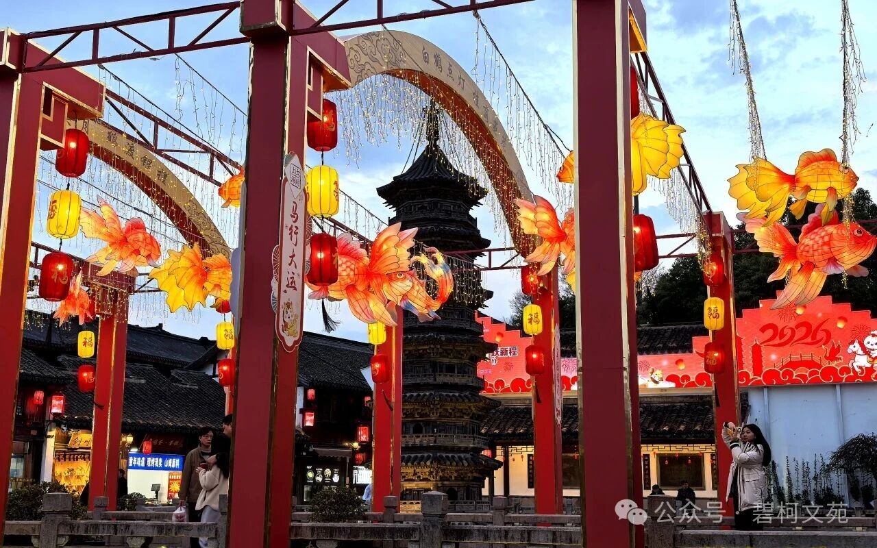 光影创新每天傍晚5点半至10点,古镇街巷的彩灯准时亮起,枝头悬挂的小马灯、河道两岸的串灯、建筑轮廓灯交织成一片灯海,与石板路、古桥梁、流水相映,虚实相生、美不胜收。除了传统灯组,还融入现代灯光技术,水上光影秀、灯影互动体验等,让游客沉浸式感受“灯在景中,人在灯中”的意境,同时搭配灯谜会、国风表演等活动,丰富了灯会的体验感。