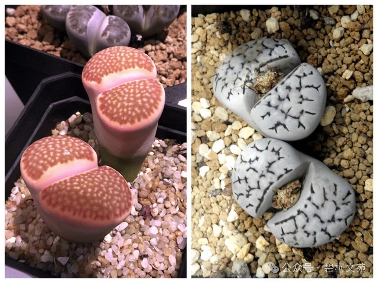 图1图2在番杏科植物展厅中,植株同时开的花虽不多,但其植物,主要是肉质的叶片独特的外形、纹路、斑点、颜色,确实让人亮眼、惊讶。小植株垒挤在一块实在是像砌起来的小石堆,并融合在生活的环境之中,它们还有一个统称叫着“多肉植物”或“肉质植物”。