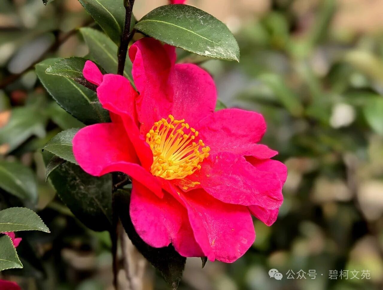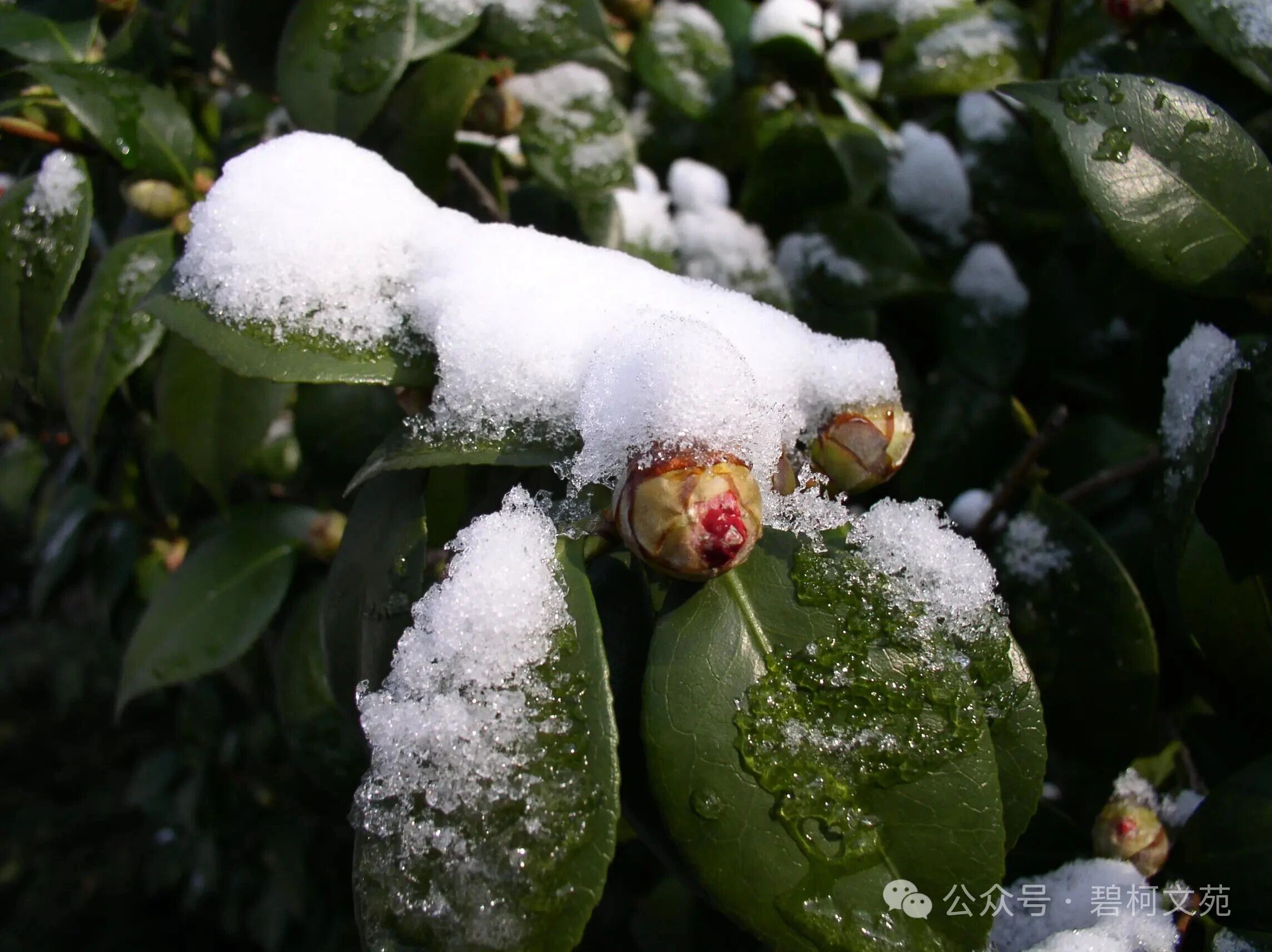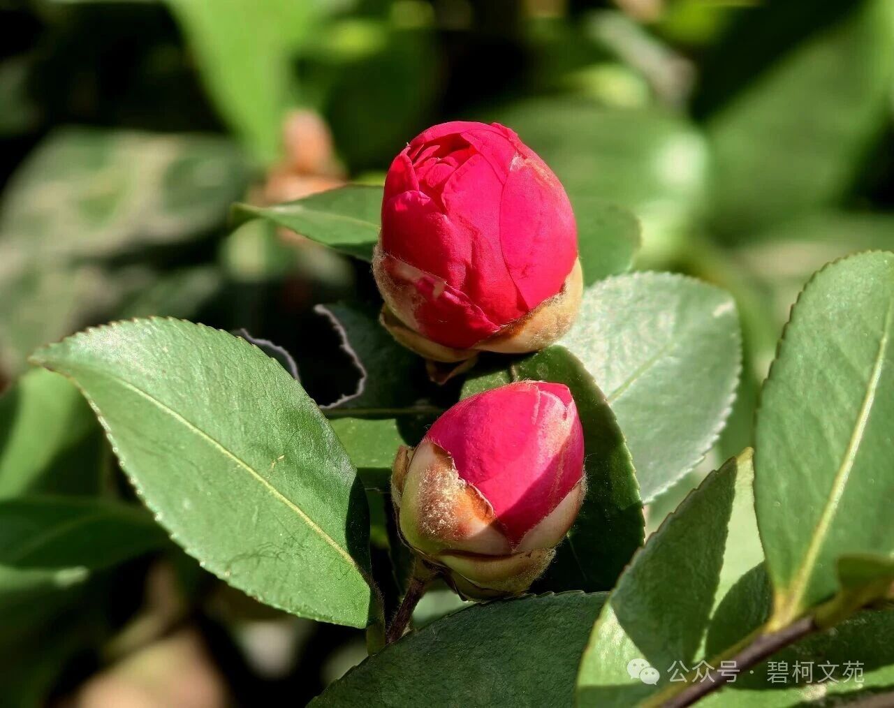 初见茶花,是在一个飘着细雨的冬日。光秃秃的枝桠上,几片革质的绿叶泛着温润的光泽,仿佛历经风霜却依旧坚守的卫士。最动人的是那些花苞,圆润饱满,裹着淡绿色的花萼,像一颗颗攥紧的拳头,积蓄着力量,等待着绽放的时刻。越是寒冷,开得越艳,它能在霜雪中挺立数月,直到春天来临。