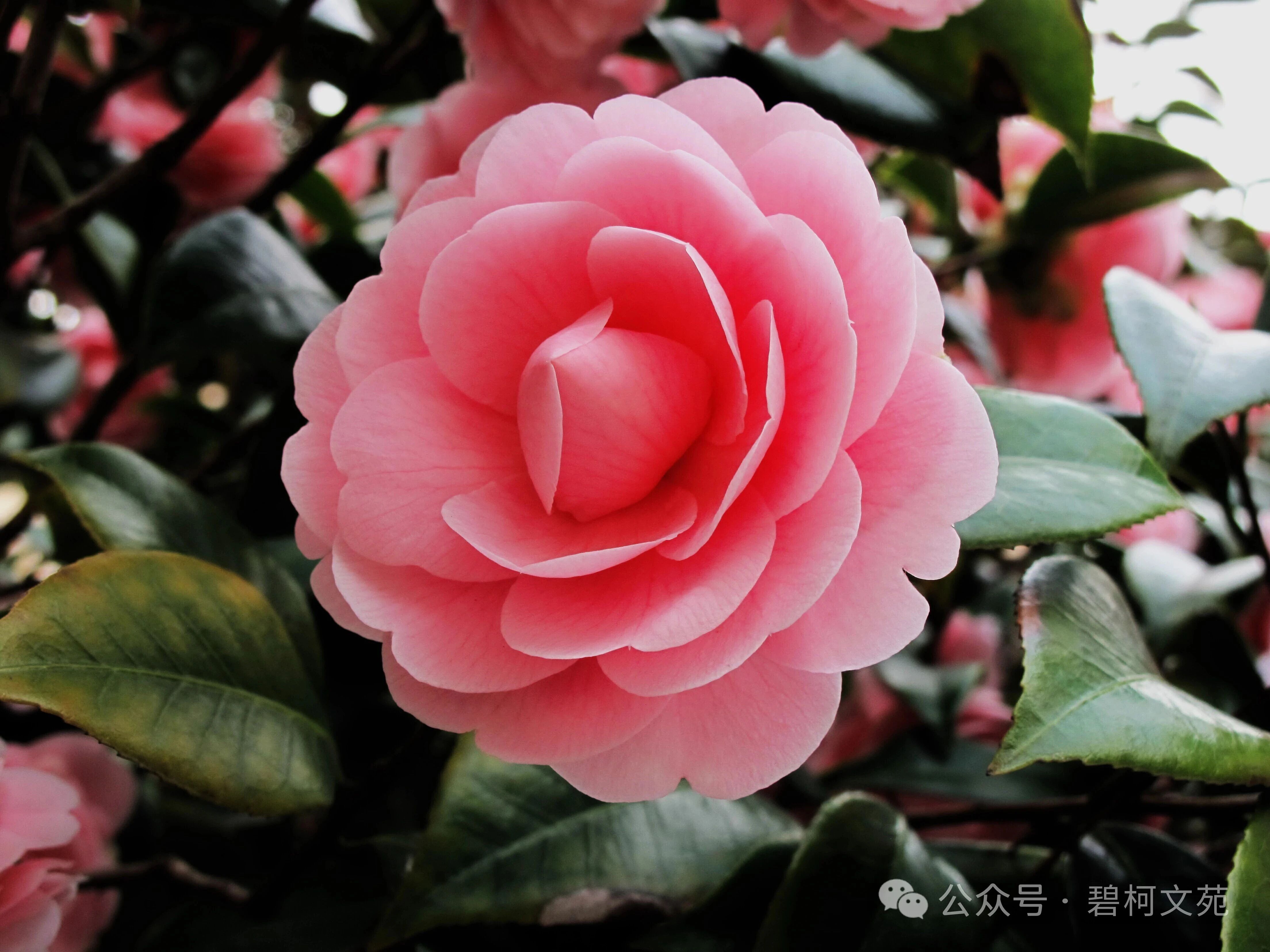 茶花又叫耐冬、玉茗花,是山茶科山茶属常绿灌木,原产中国,位列我国传统十大名花,栽培史可追溯至蜀汉,唐宋臻于鼎盛,如今全球品种超两万,兼具观赏、文化与实用价值,被世人誉为“花中娇客”。我常常在茶花树下驻足,看着它在霜雪中绽放的模样,心中满是敬佩。它没有选择在温暖的春天与群芳争艳,而是选择在最寒冷的时节,独自绽放,用坚韧对抗严寒,用美丽温暖岁月。
