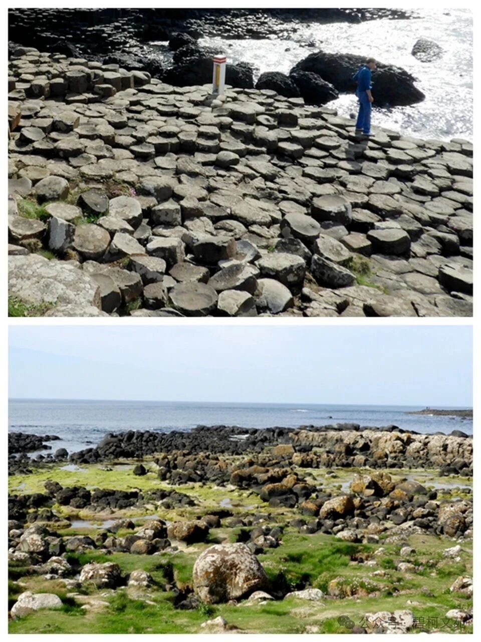 在南半球,非洲南部的生命体(番杏科植物)与在北半球、欧洲北部的非生命体(巨人石堤)相距遥远,但是,在两条绝然不同的长期演变之路上,在自然力的推动之下,最后居然交汇出如此相似的视觉闪亮点,成为人们共同观赏的热点。