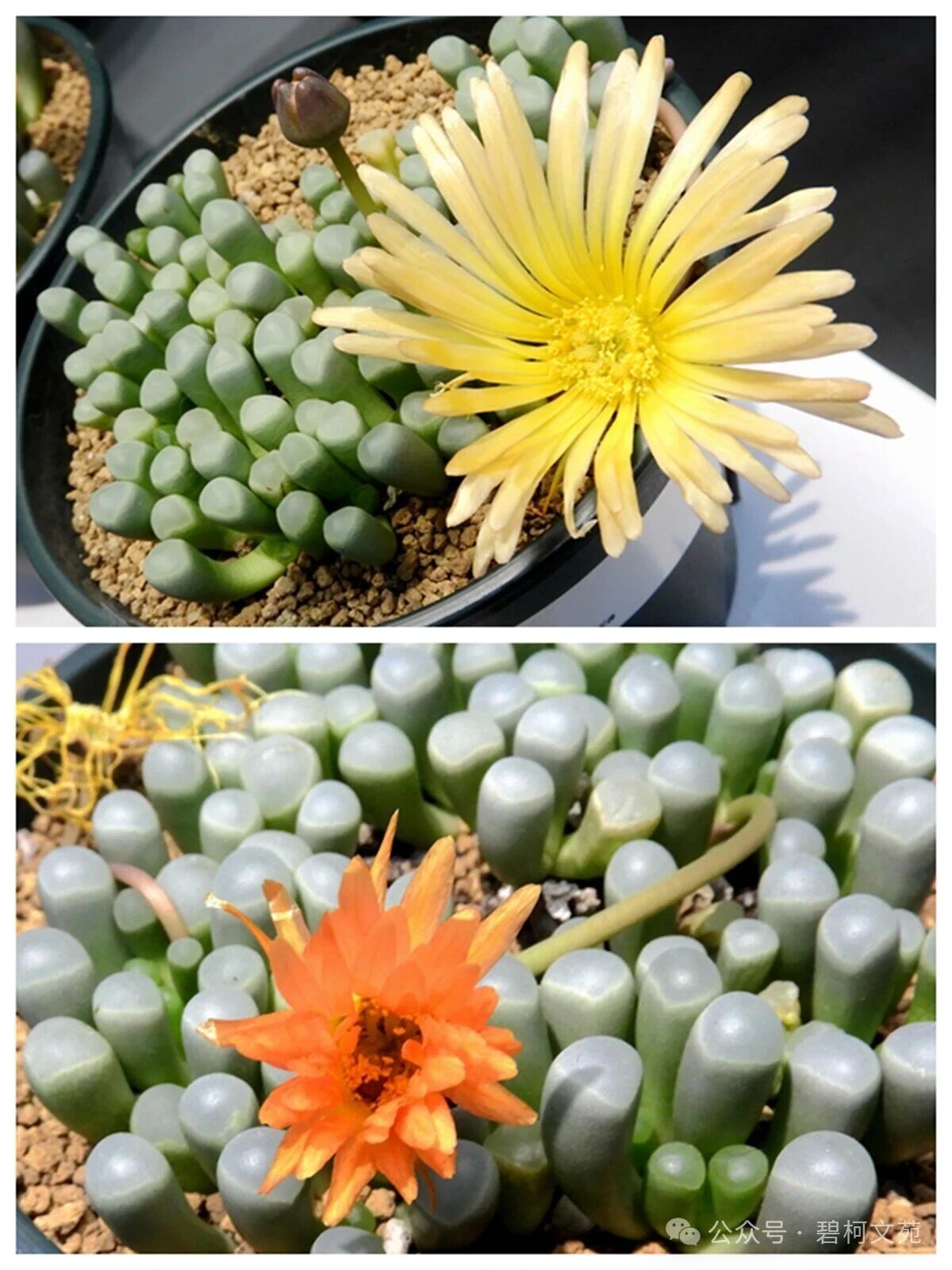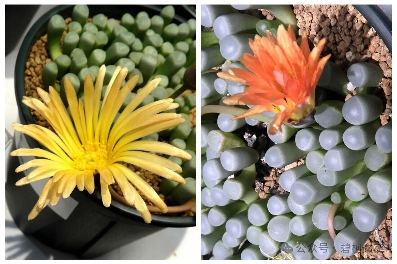 番杏科是多肉植物中外形变化比较大的一个科,如果仔细观察的话,就会发现不同种类的多肉虽然形态差别很大,但花的形状几乎完全一样,颜色、大小和细微处有所差异。这些番杏科多肉植物,为了适应不同的环境,经过漫长的岁月逐渐演化出千奇百怪的形态,但作为植物分类主要依据花的形态依然保持了番杏科植物的主要特征。其总的规律是,随着生长环境越来越干旱,其茎逐渐缩短,株型也缩小,叶子的肉质化程度则越来越高,以尽量多保存水分,减少蒸发,适应环境。由此可见,番杏科多肉植物是因环境变化而进化来的,充分体现出“适者生存”之道。