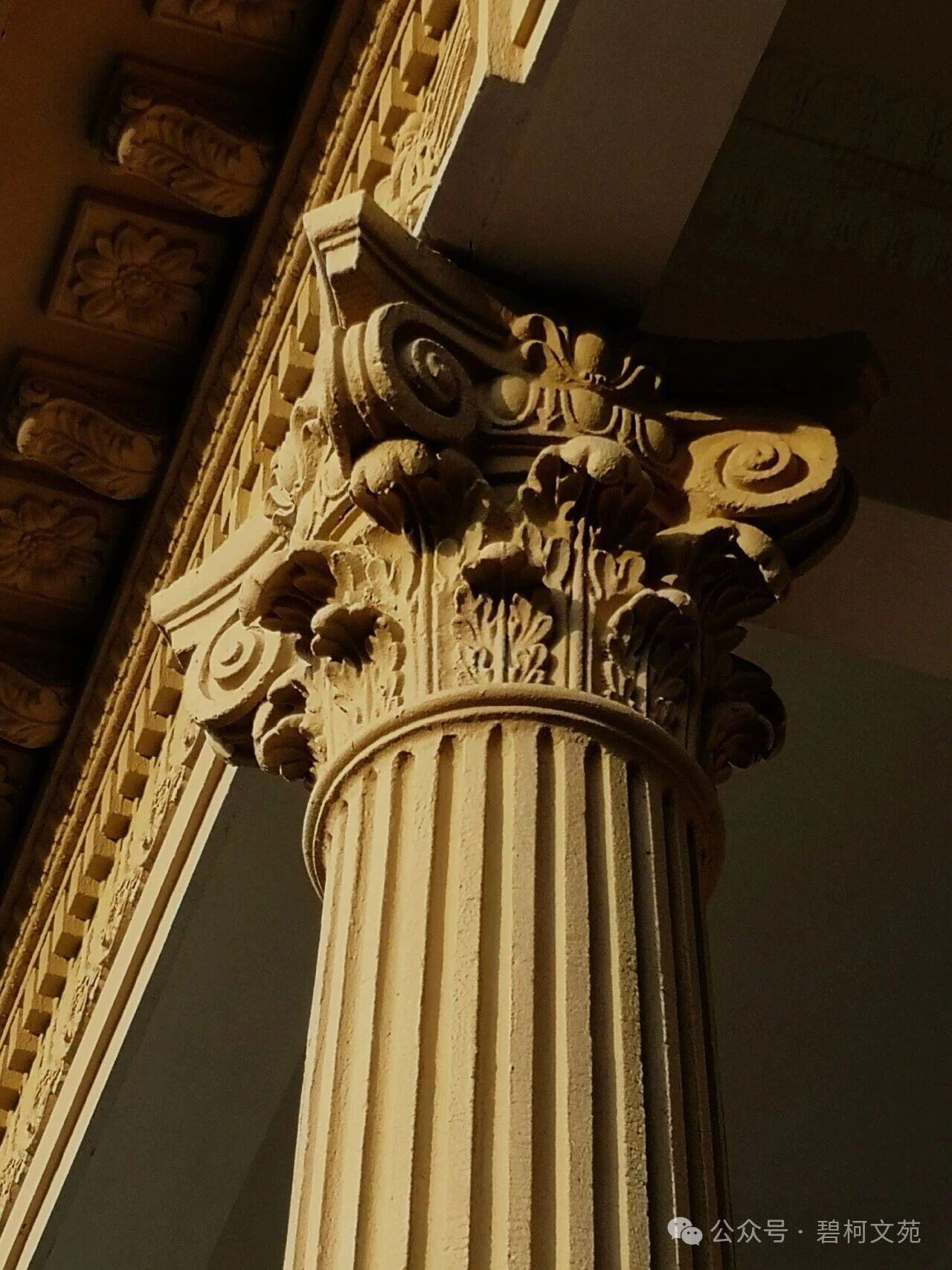 望族城长廊选用的是科林斯柱式,堪称古典建筑美学的巅峰之作——柱身的凹槽如流水般蜿蜒,随着日光流转,明暗交替间勾勒出雕塑般的立体感;柱顶莨苕叶形装饰层层舒展,叶脉纹路纤毫毕现,仿佛能嗅到地中海沿岸植物的芬芳。
